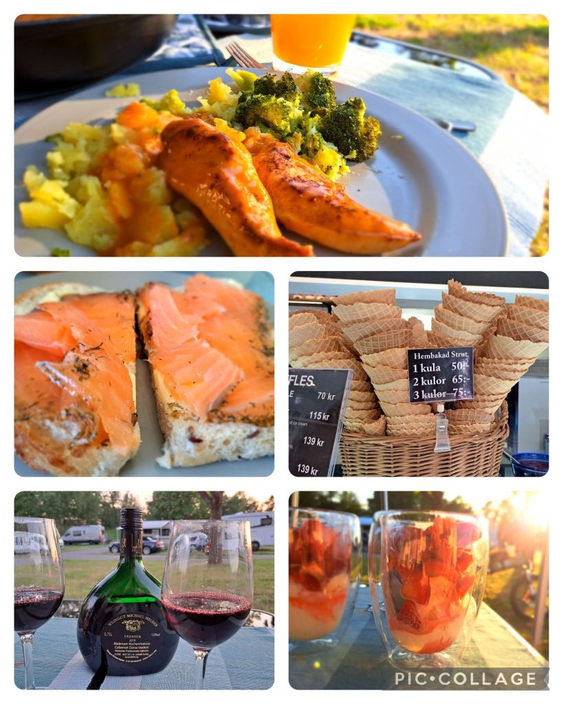 Am Montag sind wir vom Göta-Kanal in Richtung Stockholm gezuckelt. Haben uns etwas verunsichern lassen, was die Qualität unseres ausgesuchten CP angeht. Aber Hermann meint, wir müssen uns selbst ein Bild machen. Mit seinem Mix aus Norwegisch und Schwedisch gewinnt er die Wikinger immer sofort. Wieder Traumplatz ergattert. Und für uns ist die Qualität Sanitär/Service oki.
